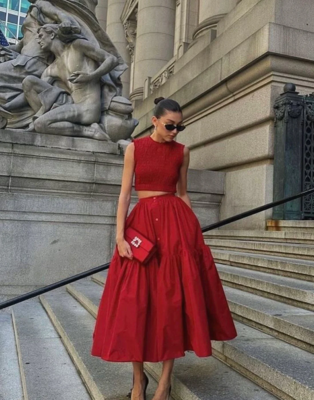 Ladies: Cocktail dresses or elevated separates in soft fabrics, bold prints, or rich colors.